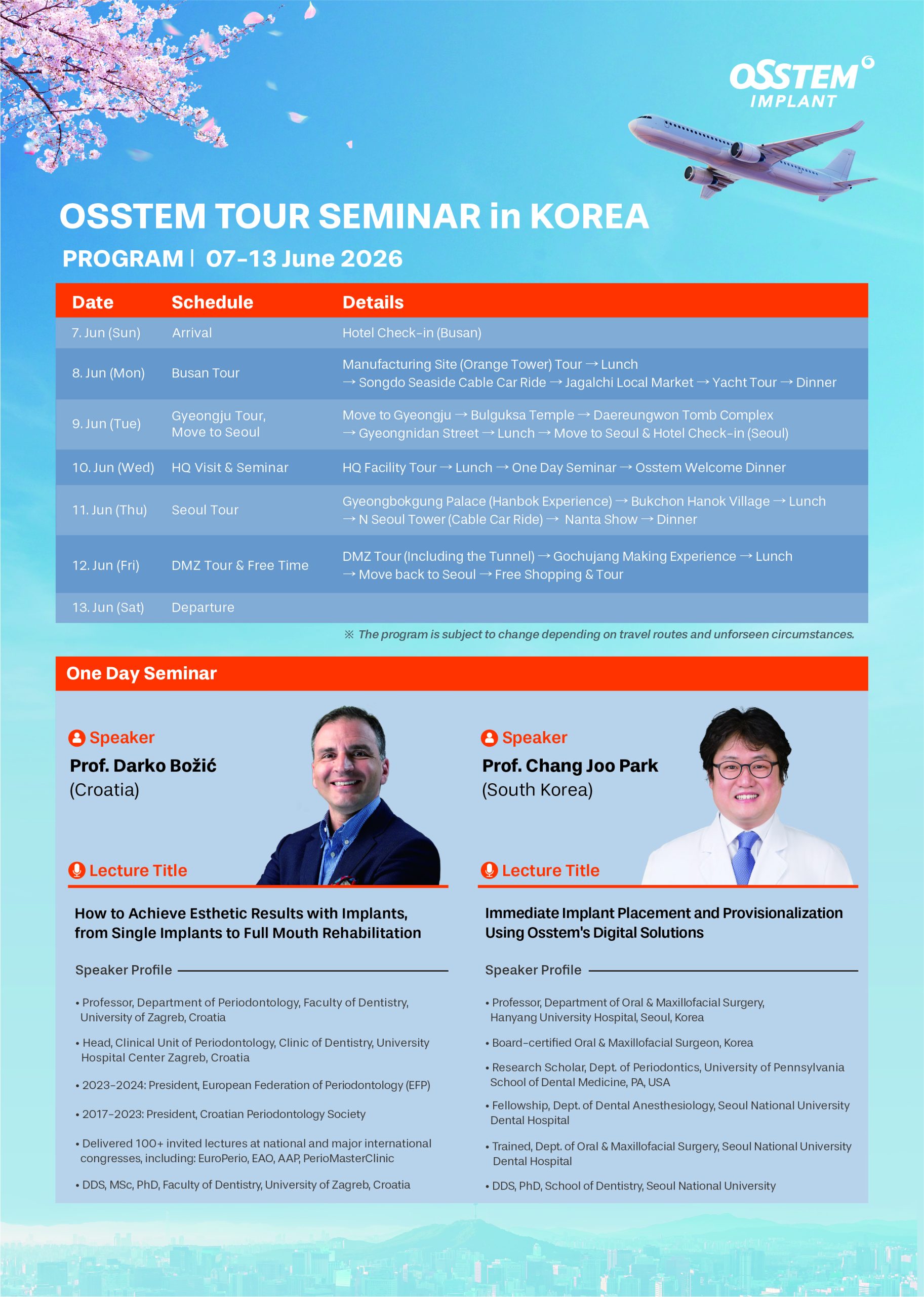 Kviečiame Jus į išskirtinę profesinę ir pažintinę kelionę į Pietų Korėją – „Osstem Tour Seminar 2026“, kuri vyks 2026 m. birželio 7–13 d.